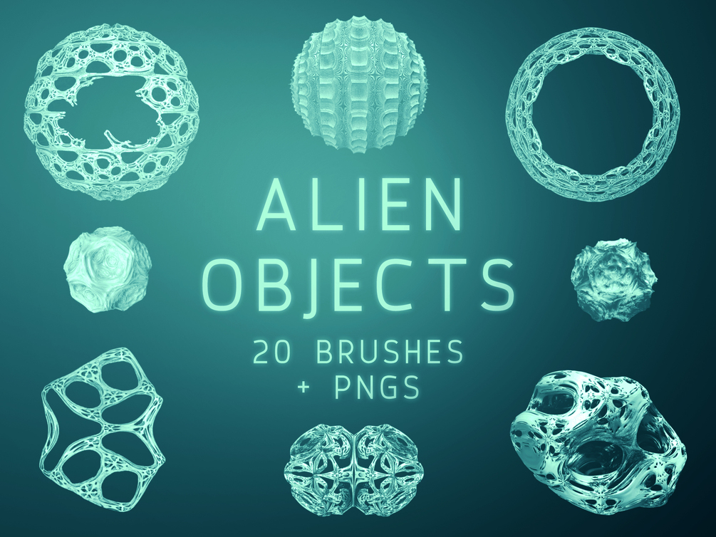 Alien Objects Photoshop Brushes and PNGs (Sets of 20)